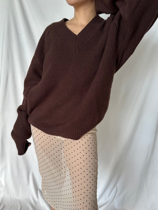 LENA V NECK JUMPER - CHOCOLATE